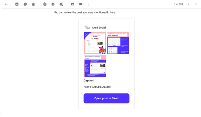 You can go straight to the post from the notification email by clicking open post in Sked at the bottom of the email.