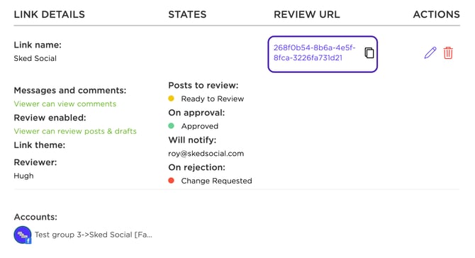 If you’re using approvals for client approval by external customers (those without access to Sked) you can generate a live URL for each customer on Upcoming Posts, Drafts, or Archive using the button 'View/edit review links'.