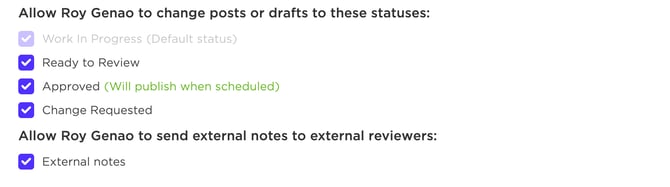 - You can limit which Post Statuses team members can view, as well as their ability to leave External Notes within their user settings.