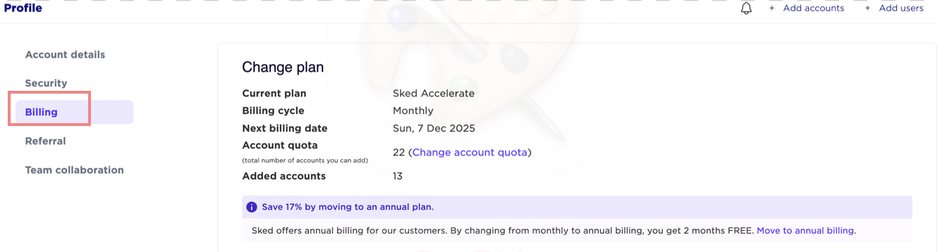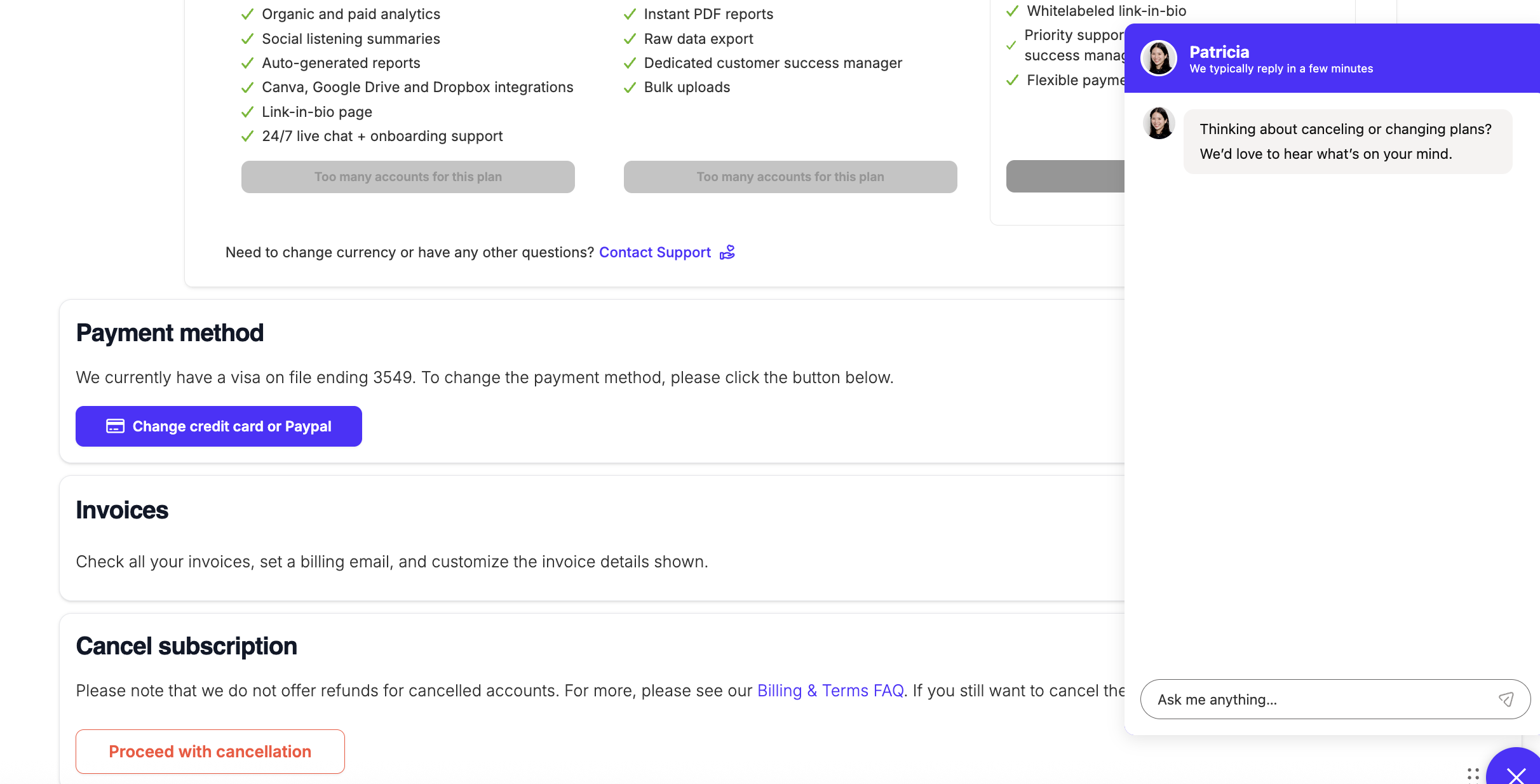 Need to cancel instead? You can cancel using these same steps or email hi@skedsocial.com if you're not seeing the option in your dashboard.