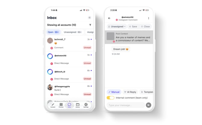 - Unified Conversations: Reply to DMs, comments, and reviews for all your connected social accounts in one spot.