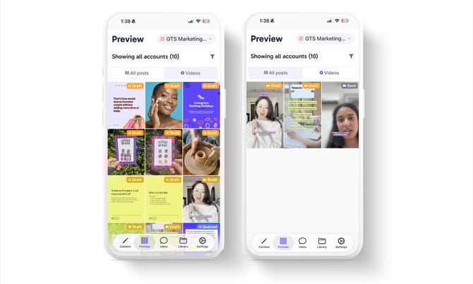 - Visual Planner: Drag-and-drop to perfect your Instagram grid, and get accurate, multi-platform previews—including 4:5 images and 9:16 vertical videos for TikTok and YouTube.