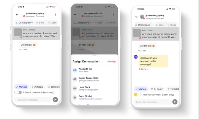 - Assign on the Go: Instantly assign a conversation to a teammate for follow-up, keeping your response flow organized wherever you are.