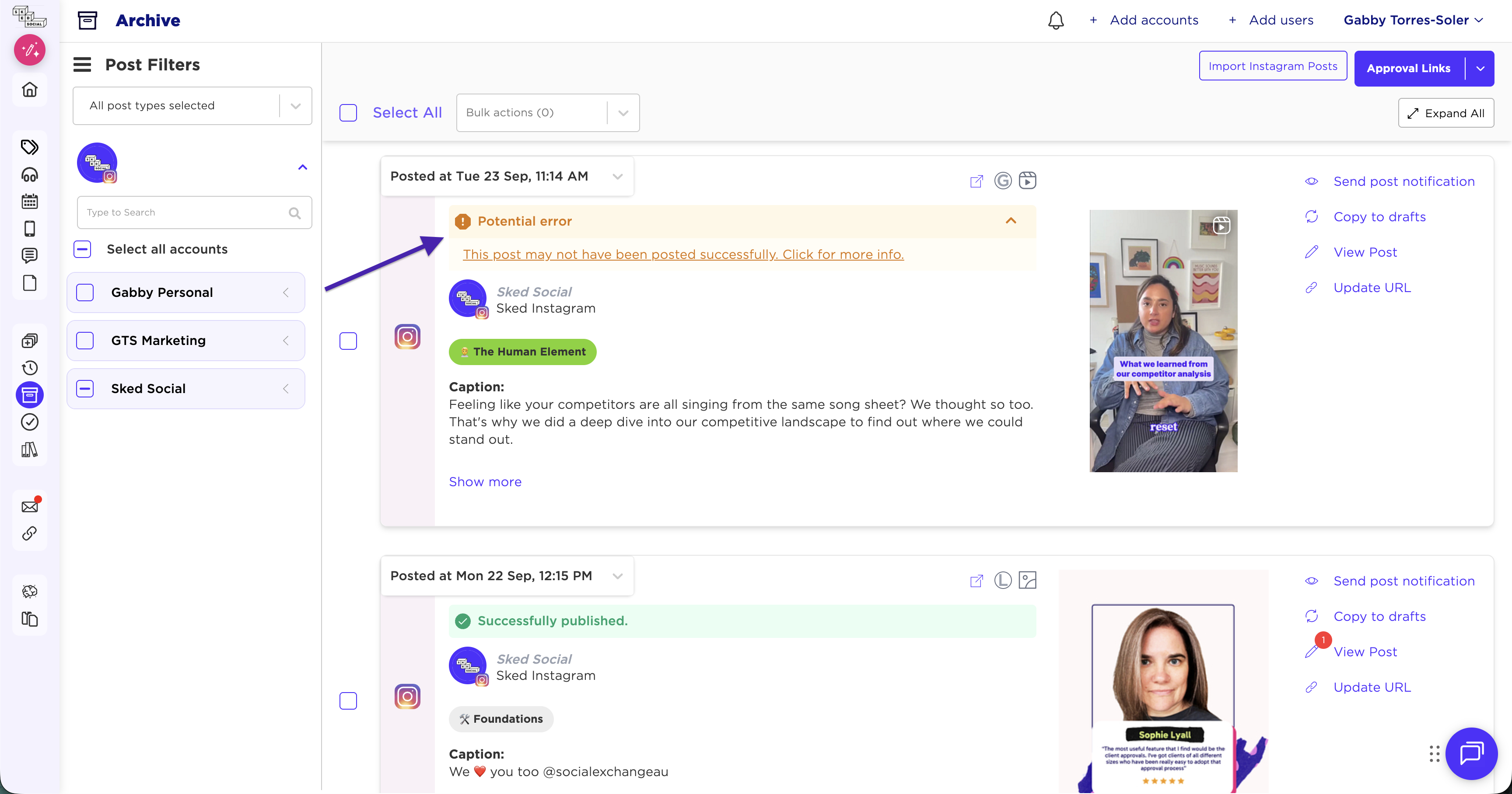 What is a potential error for an Instagram post? | Sked Social Help Center